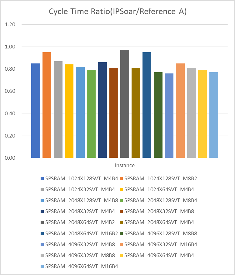 IPSOAR memory compiler通过独有的低功耗设计方案,静态漏电流同比业界降低30~50%;同时支持三种低功耗模式(Nap,Retention,Power down),满足客户对不同低功耗模式下的需求。